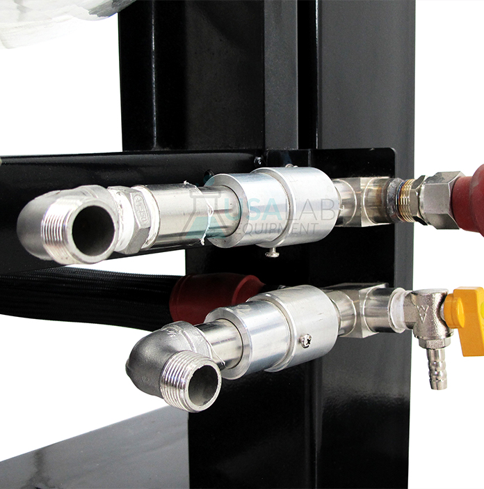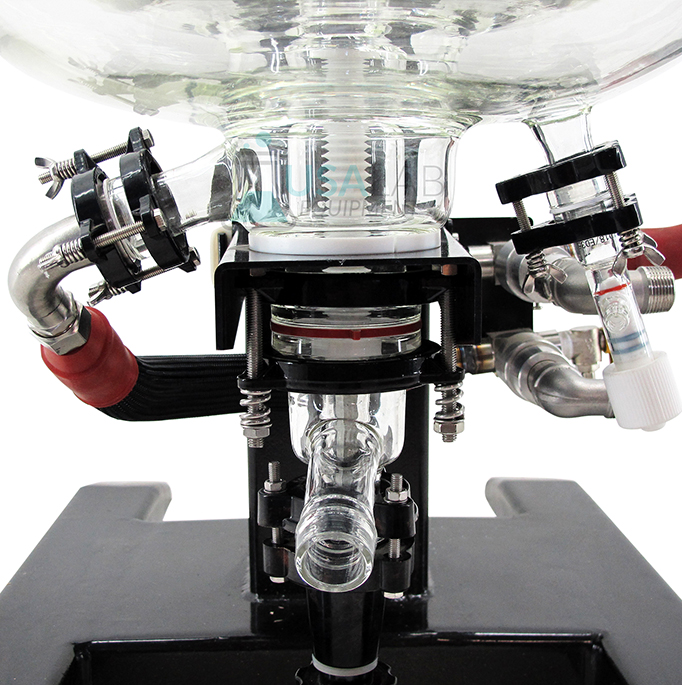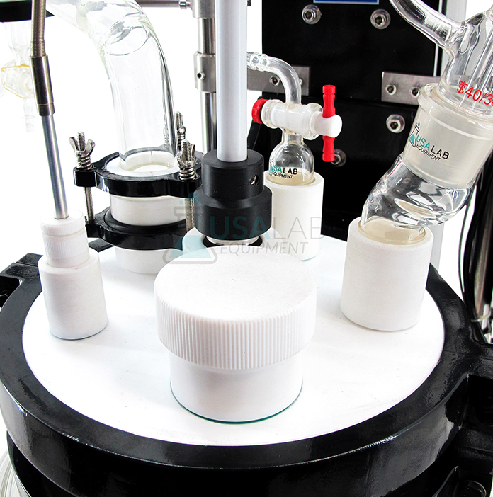 The USA Lab 20L Electric Lift Double Jacketed Glass Reactor is the most advanced reactor on the market. This unit has a built in lift that can raise the entire lid up or down with the touch of a button. Our JRE reactors also have a hand crank in the back to allow near 180° tilt of the jacketed vessel. With these two features, reaction has never been simpler.