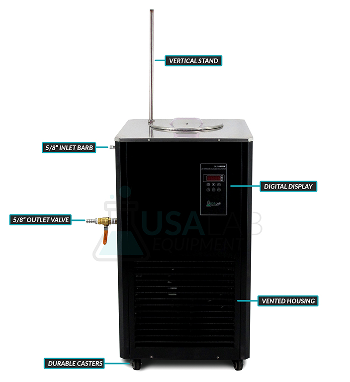 The USA Lab DLSB-20/40 is a powerful -40°C Chiller with a 20L Reservoir. This chiller is a true lab chiller than is ideal for applications involving vacuum systems, jacketed reactors, rotary evaporators, columns, solvent tanks, and even analytical instruments.